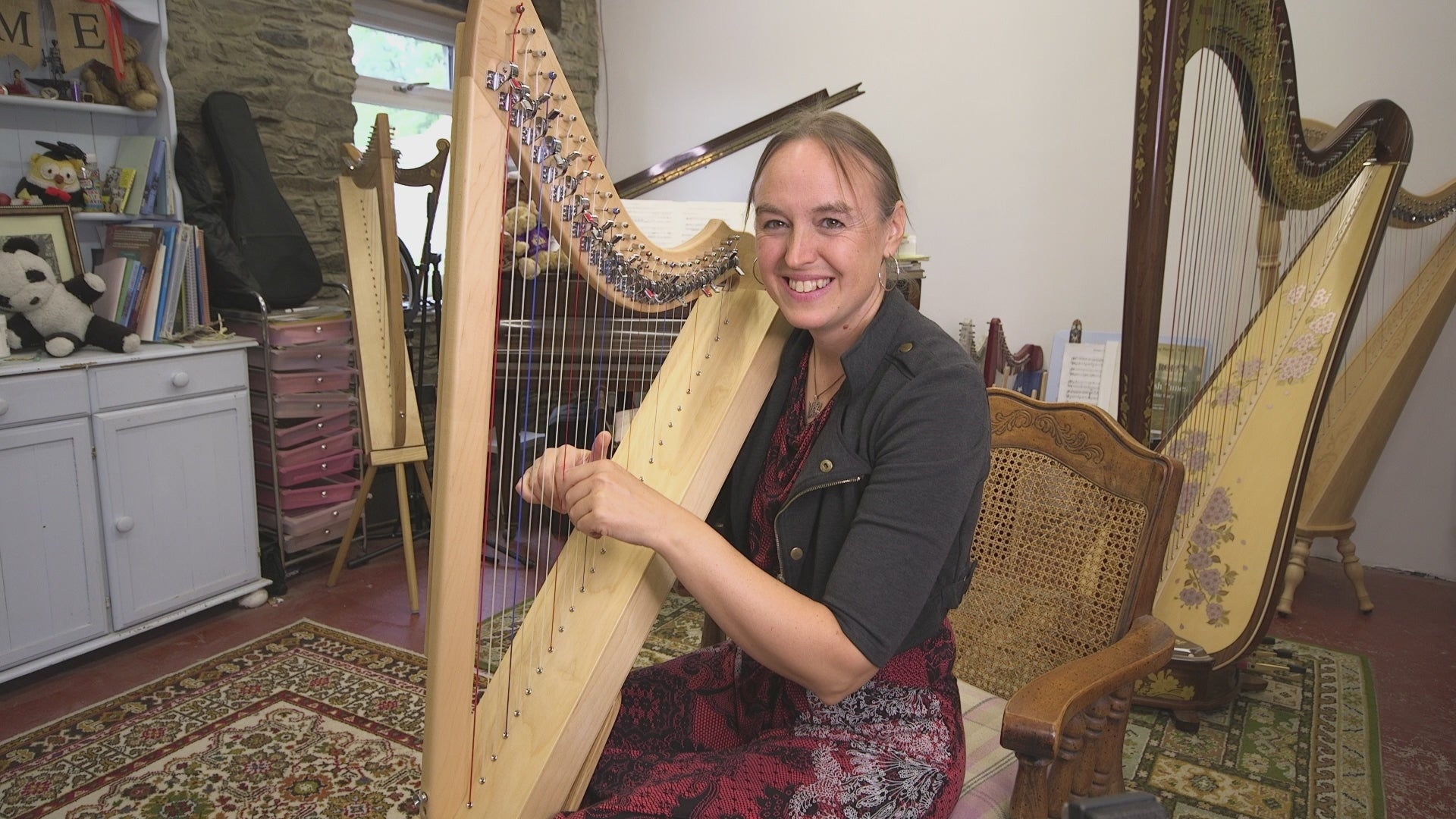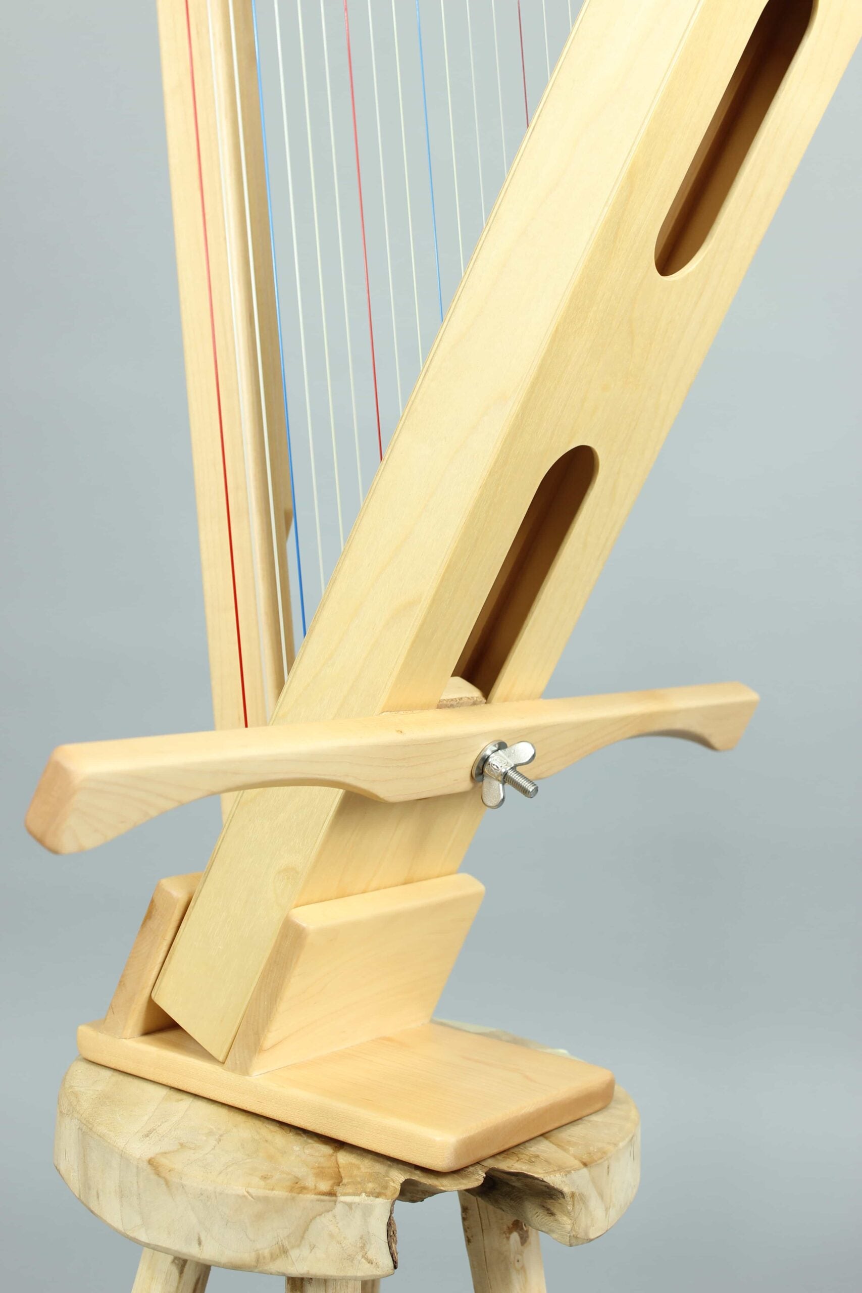 Whether kitchen bench, sofa, forest meadow or ledge, this lever harp adapts. Equipped