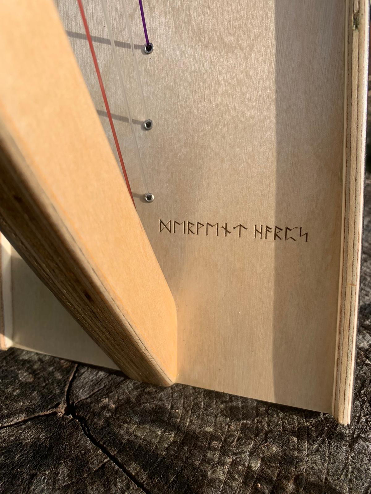 as well as Norse inspired designs we have Derwent Harps engraved in Runes on the bottom of the soundboard.